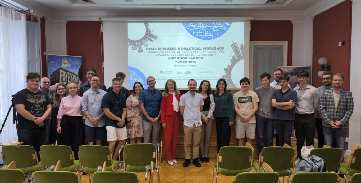 Final Academic & Practical Workshop and Book Launch University of Szeged September 11-12th, 2025 On September 11-12th 2025 Final Academic & Practical Workshop ‘Urban Post-COVID Recovery in the V4 Countries: Towards Effective Sectoral Policies?’ and Book Launch was organized at the University of Szeged in Hungary. As part of the project ‘Urban Post-COVID Recovery…